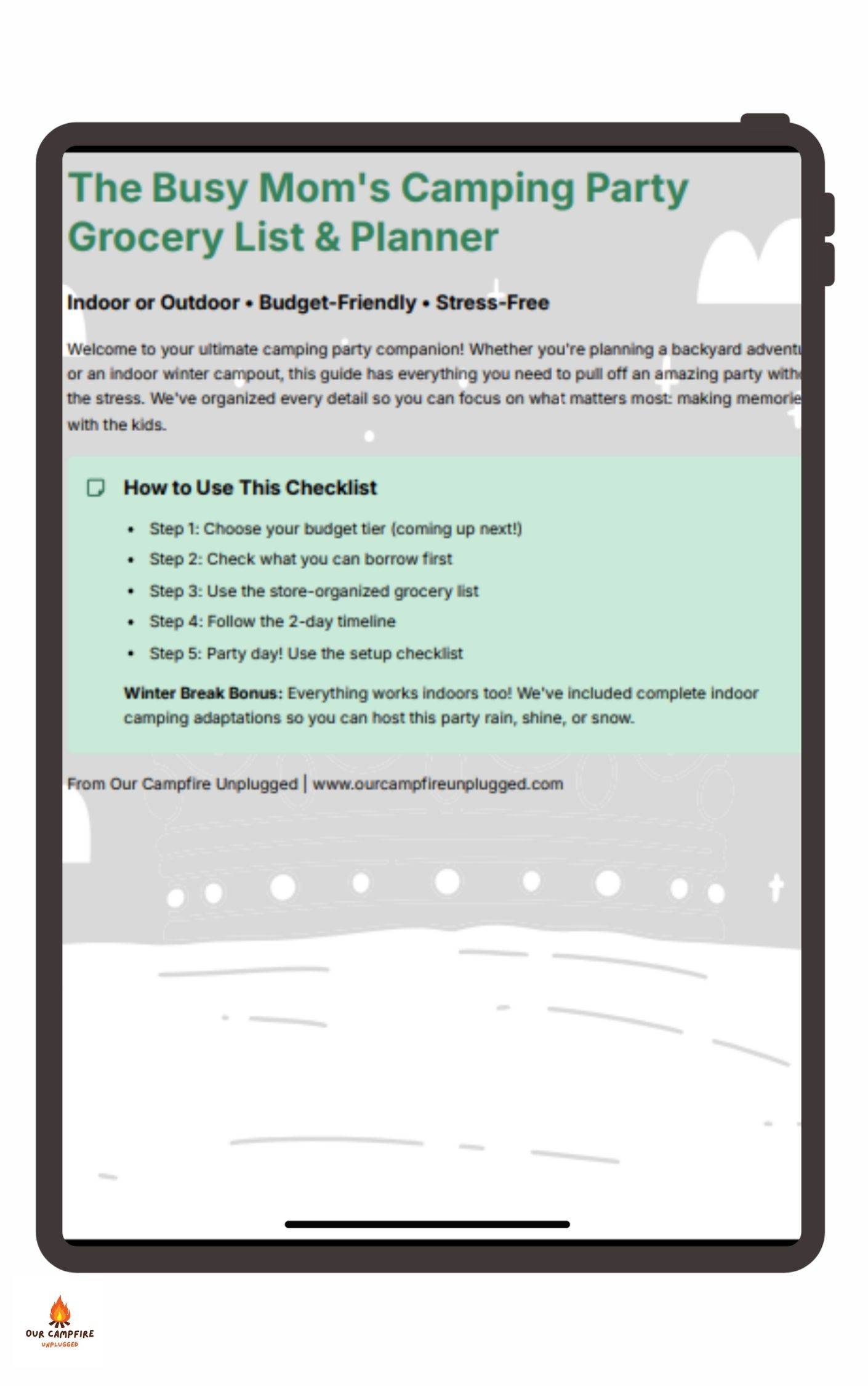 ā Indoor Camping Adaptation Guide Winter break? Snow day? Same checklist works for basement or living room campouts.